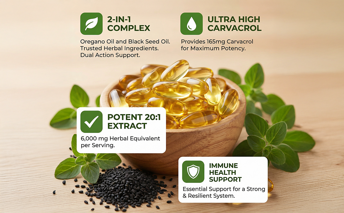 ✅ Dual Botanical: Synergistic Oregano & Black Seed Oil