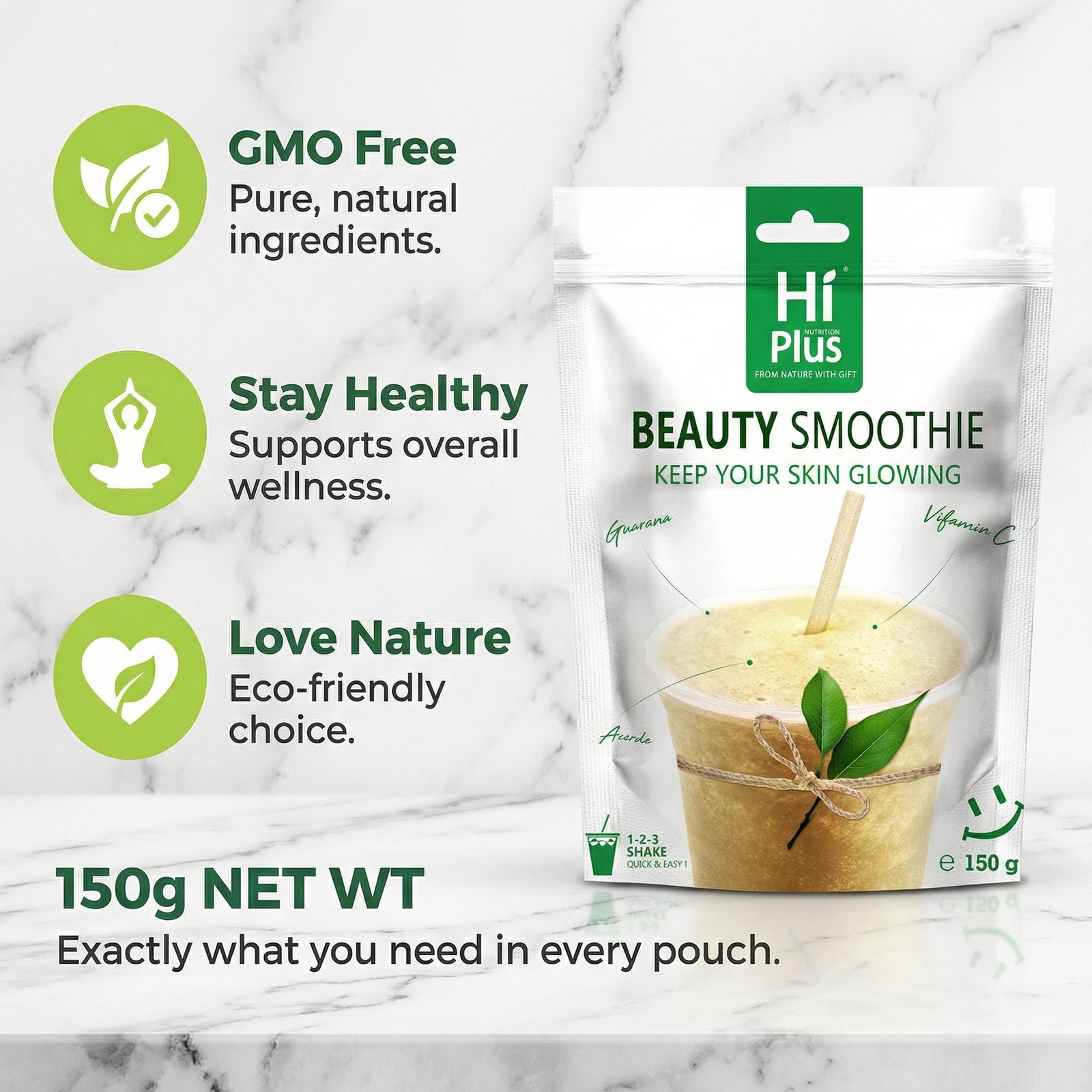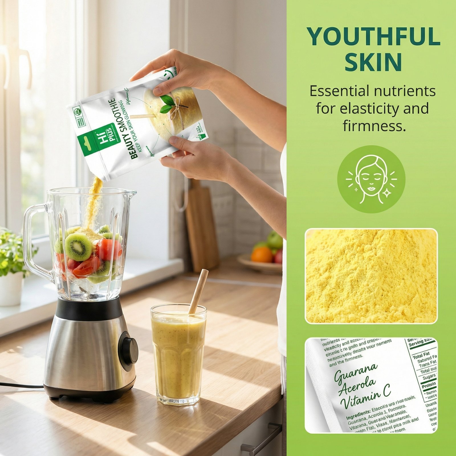 HiPlus® Beauty Smoothie is a professional dietary supplement designed to help skin radiate from within. This innovative product blends acerola, baobab, lucuma, and high-quality pea protein to provide multi-dimensional nutritional support.