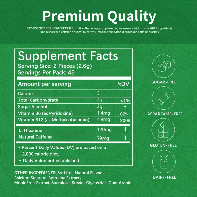 Smooth & Stable Energy: The 79mg caffeine and 120mg L-theanine duo provides a sustained mental boost without the "caffeine crash."