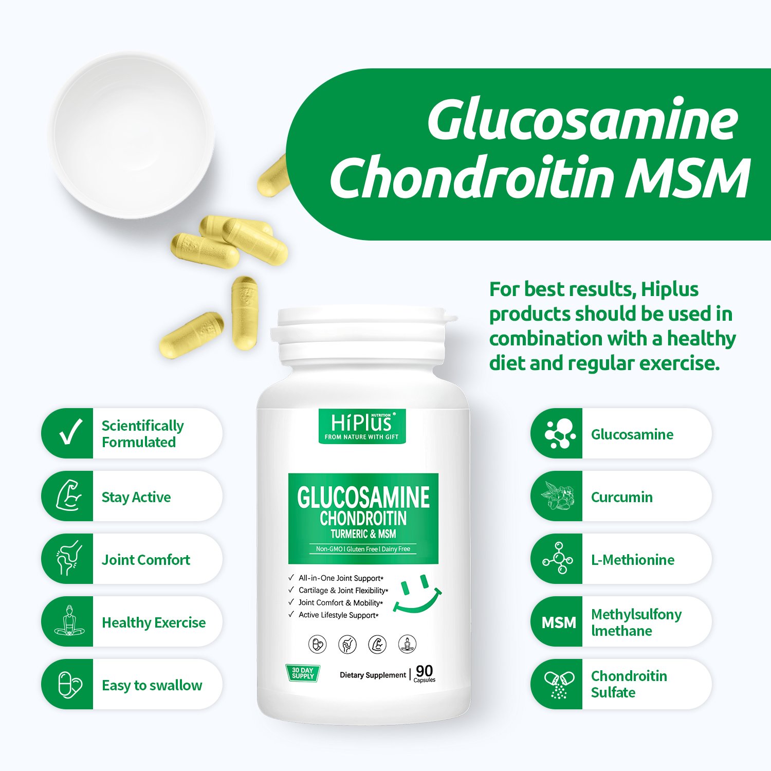 HiPlus® Glucosamine Chondroitin MSM and Turmeric Supplement