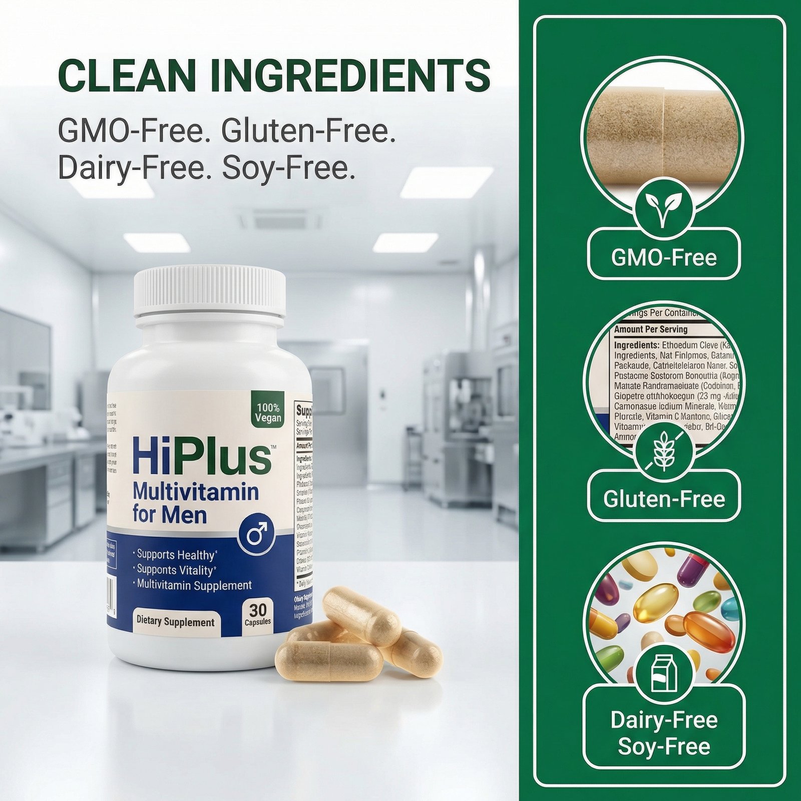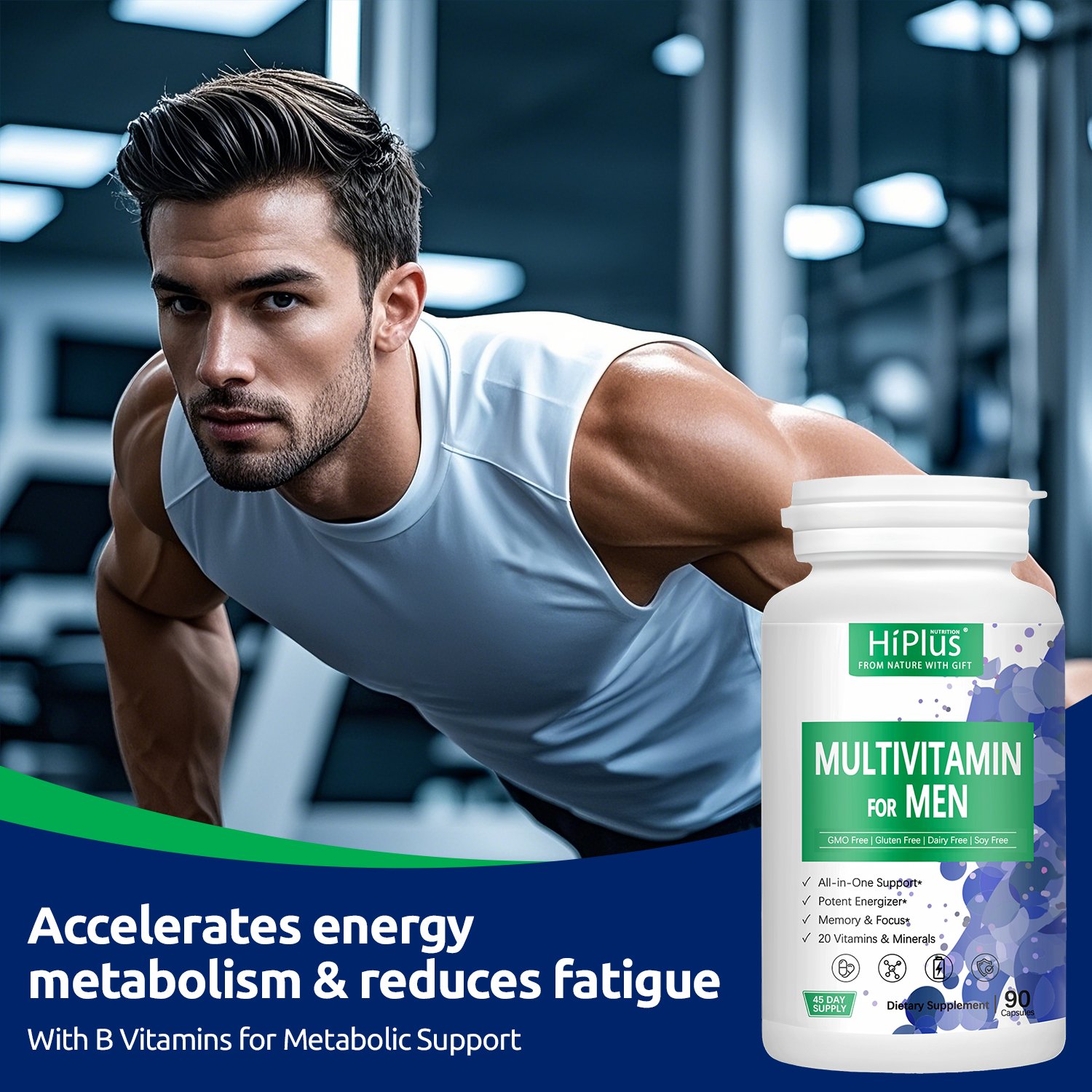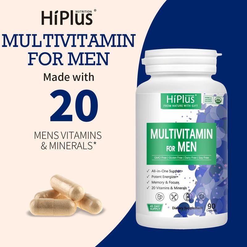 HiPlus® Multivitamin for Men — Daily Support for Energy, Stamina & Performance 90 Capsules | 20+ Essential Vitamins & Minerals | Non-GMO & Allergen-Free