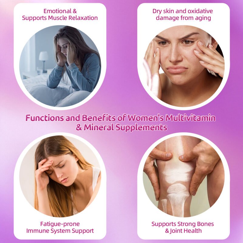 The core advantage of this formula lies in its multiple benefits: the B vitamin complex and folic acid work synergistically to provide stable, natural energy and effectively relieve stress; the golden combination of calcium and vitamin D focuses on strengthening bone health. The specially added “Patented Blend for Women” (containing red clover, wild yam, and cranberry extracts) is designed to optimize hormonal balance and support reproductive health. The product adheres to pure standards of being non-GMO, free of artificial additives, gluten-free, and soy-free, and features easy-to-swallow plant-based capsules. Whether you are a professional woman striving for high efficiency in the workplace or an energetic person who loves sports, just two capsules a day can easily fill the nutritional gaps in your diet and rejuvenate your body and mind from the inside out.