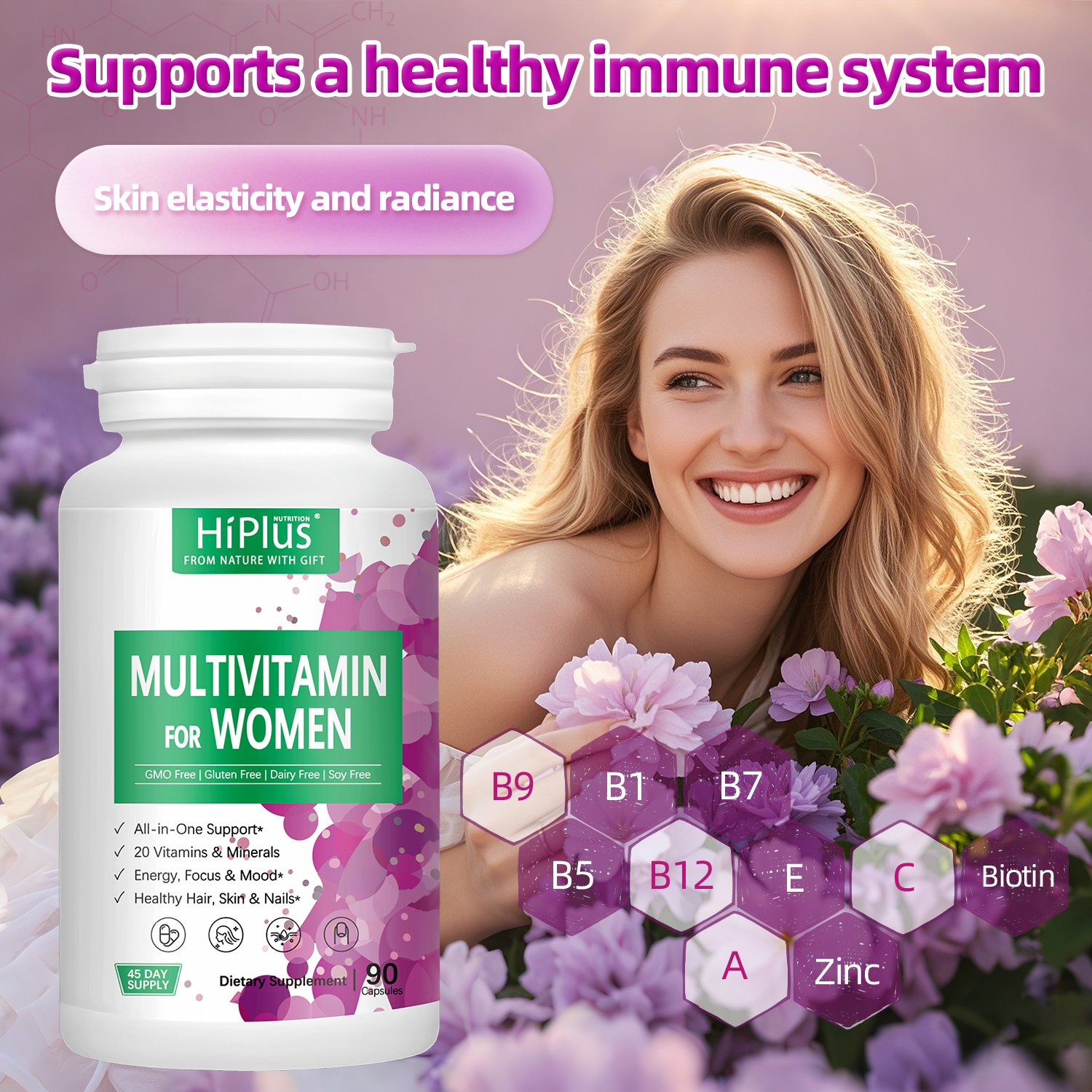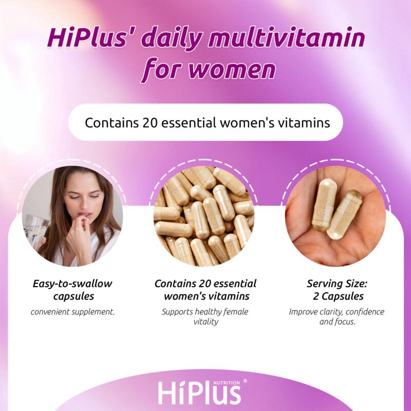 HiPlus® Multivitamin for Women — Daily Energy, Focus & Vitality Support 90 Capsules | 20+ Essential Vitamins & Minerals | Non-GMO & Vegetarian
