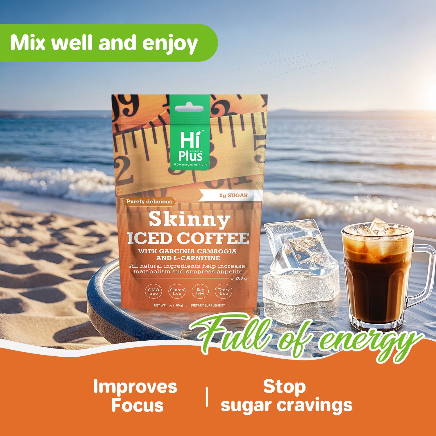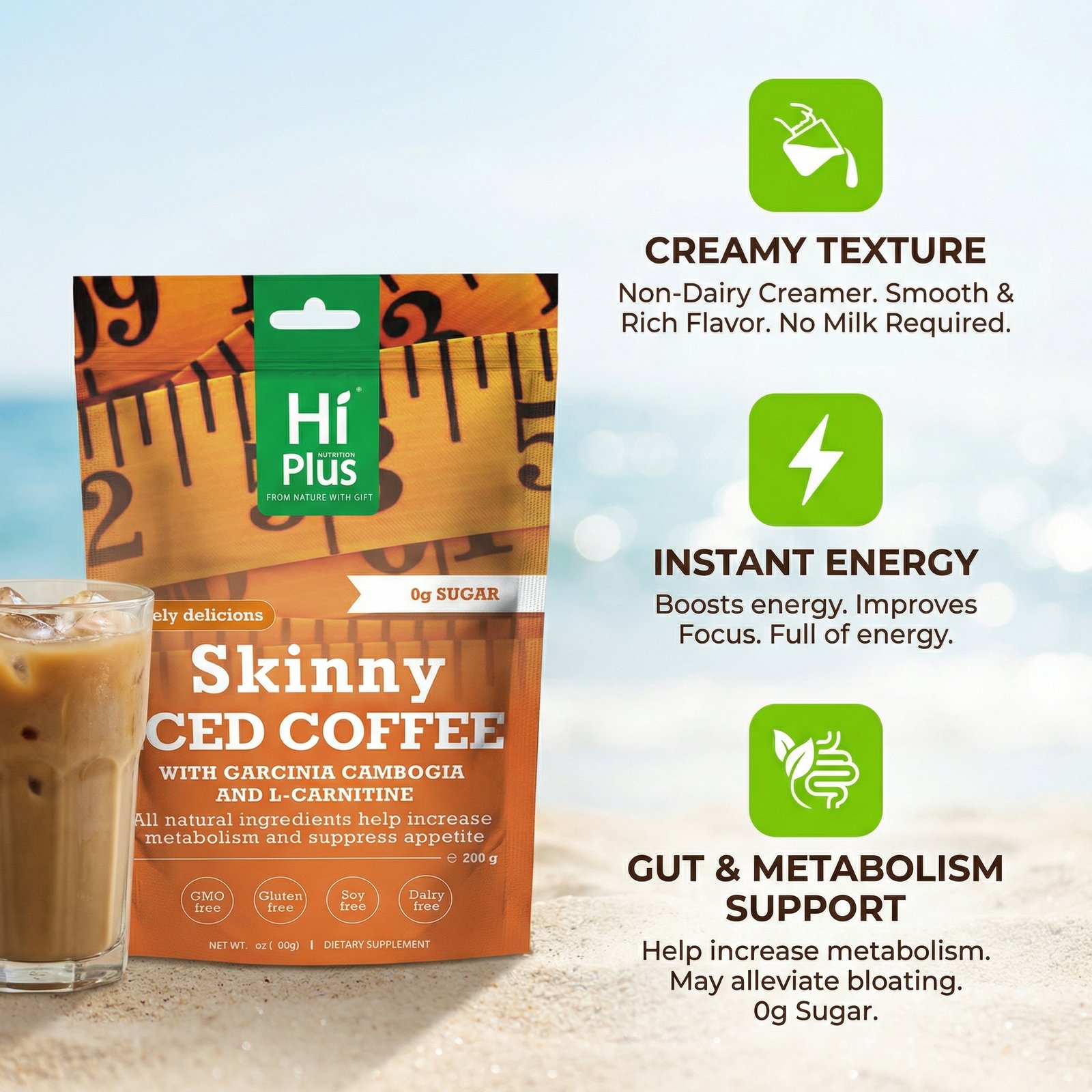 HiPlus® Organic Instant Coffee Drink is a revolutionary functional beverage designed to upgrade your daily coffee habit into a holistic health regimen. Developed by a team of expert scientists, this product uses premium coffee beans certified organic by the USDA and features a groundbreaking blend of Garcinia Cambogia extract and L-Carnitine. This golden combination effectively supports energy metabolism, helping you maintain peak performance during exercise or a busy workday.