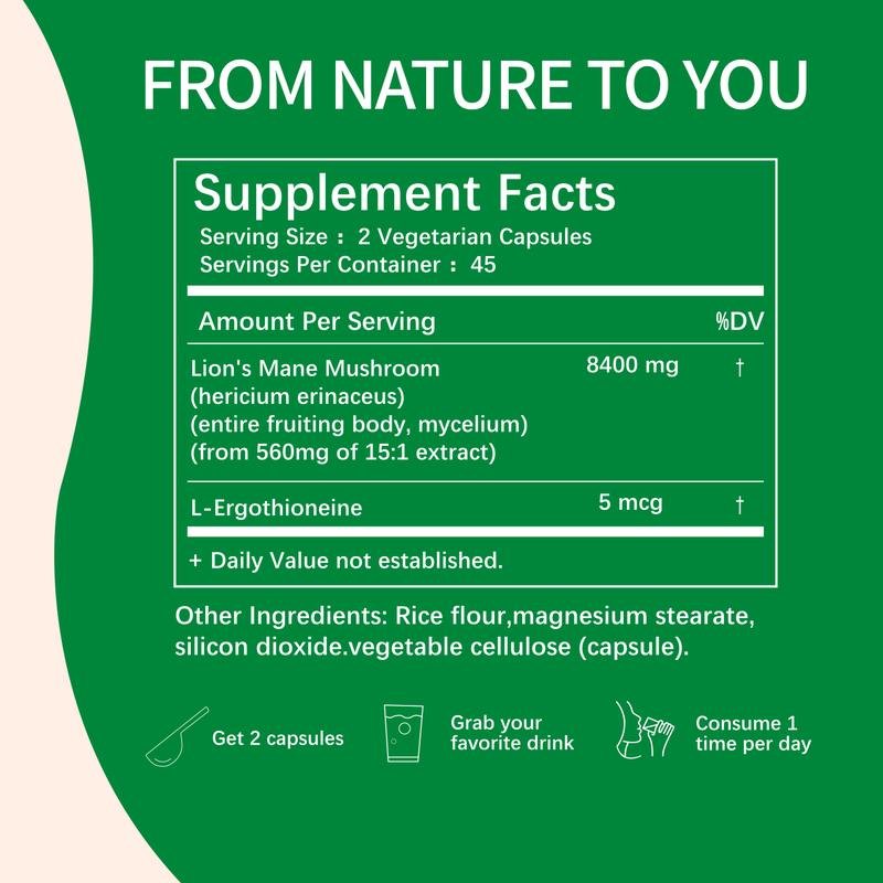 Unlike regular mushroom products, this formula is specially fortified with rare L-Ergothioneine. Known as the “longevity vitamin,” this ingredient precisely supports cellular energy production and combats oxidative damage, helping you maintain mental clarity while slowing down aging. The product uses 100% organic lion’s mane mushroom grown in the USA, adhering to pure standards of being free of fillers and allergens, and has undergone rigorous testing by third-party laboratories. Whether you are a high-intensity professional or a lifestyle enthusiast pursuing a healthy aging process, this convenient and effective vegetarian capsule is the ideal choice for starting your day at a high level and maintaining your physical and mental balance.
