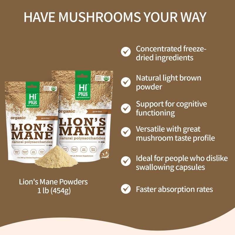 HiPlus® Organic Lion’s Mane Mushroom Supplement Powder
